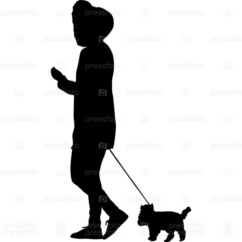 Силуэт женщины и собаки на белом фоне
