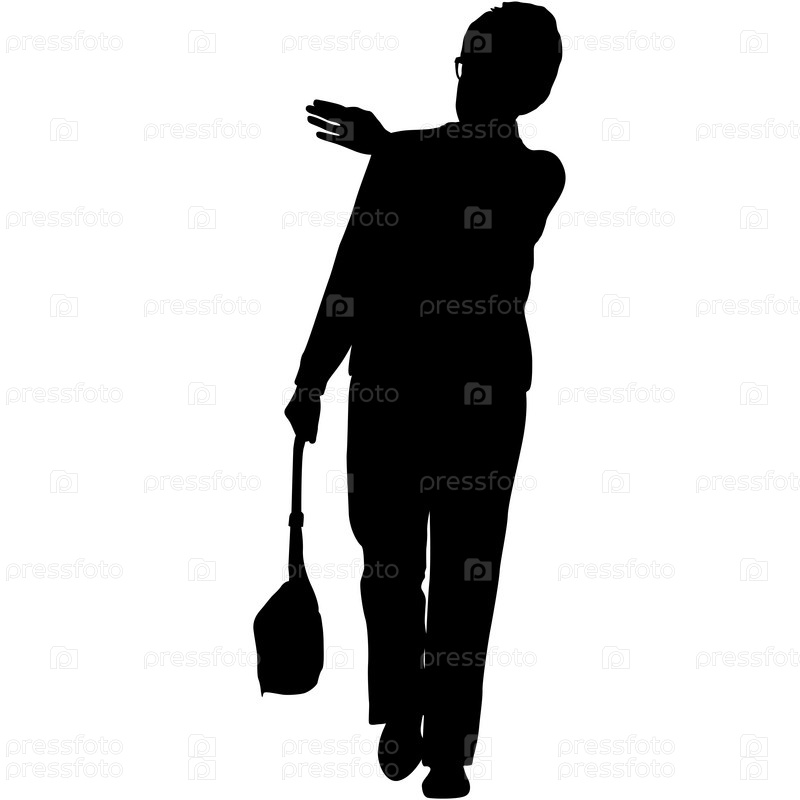 Черные силуэты женщины с поднятой рукой на белом фоне