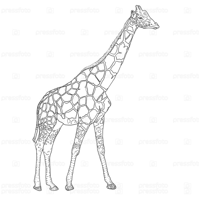 Эскиз высокого африканского жирафа на белом фоне
