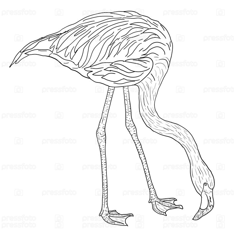 Эскиз птицы фламинго на белом фоне