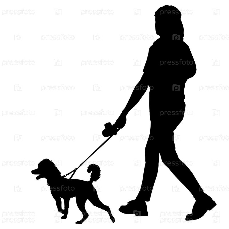 Силуэт женщины и собаки на белом фоне