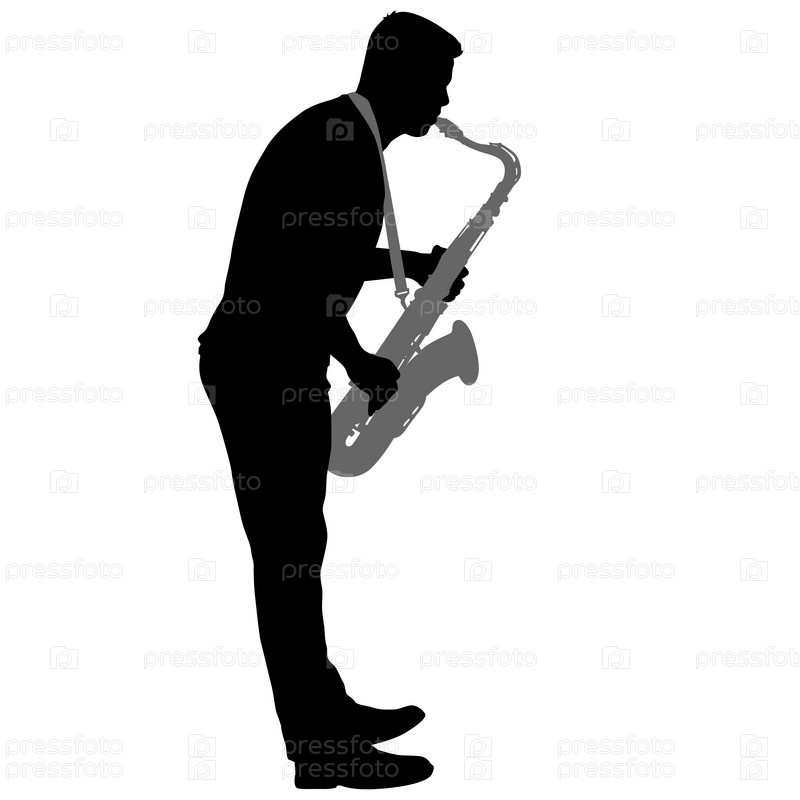 Силуэт музыканта, играющего на саксофоне на белом фоне