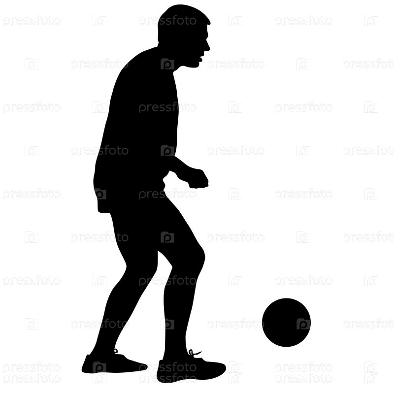 Силуэты футболистов с мячом на белом фоне