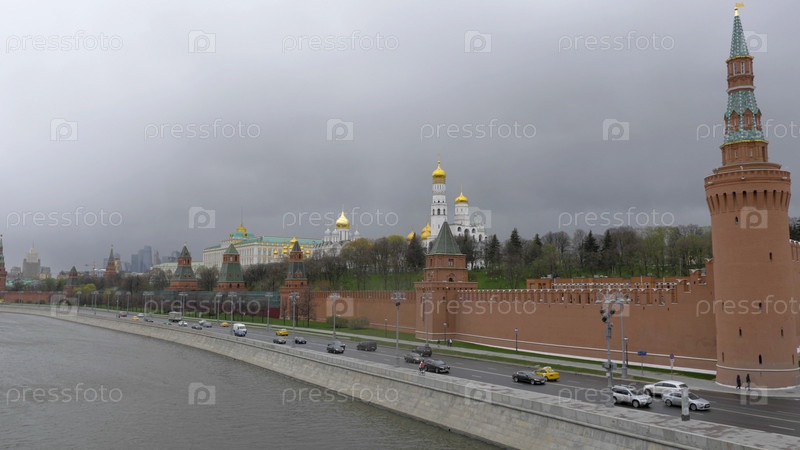 Прекрасный вид на Московский Кремль с реки, Россия