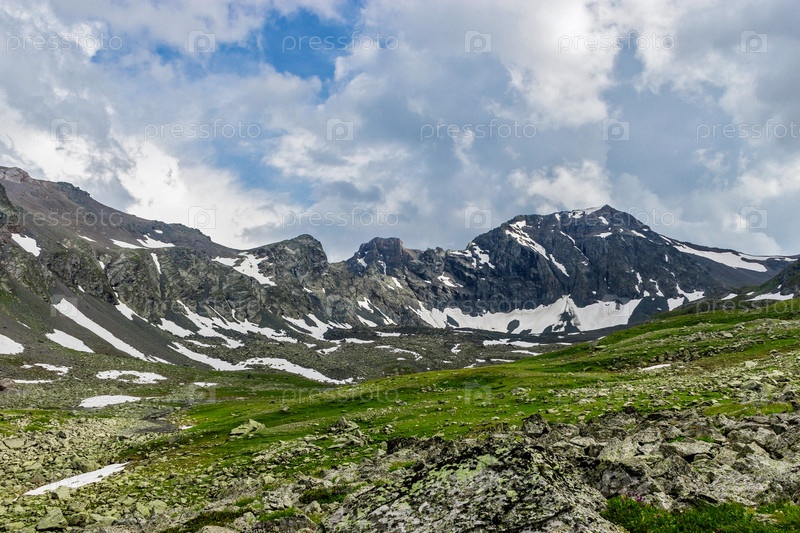 Долина в горах Кавказа в пасмурный летний день