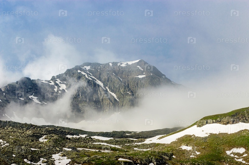 Кавказские горы и облачное небо в летний день