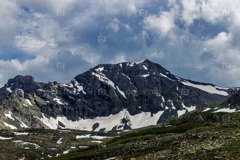 Долина в горах Кавказа в пасмурный летний день