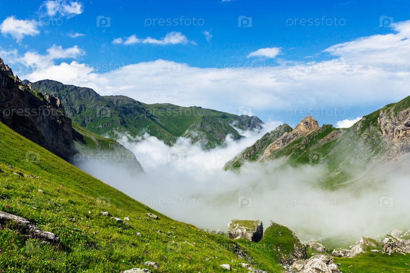 Долина в горах Кавказа в летний день