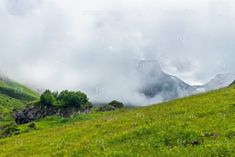 Долина в горах Кавказа в летний день