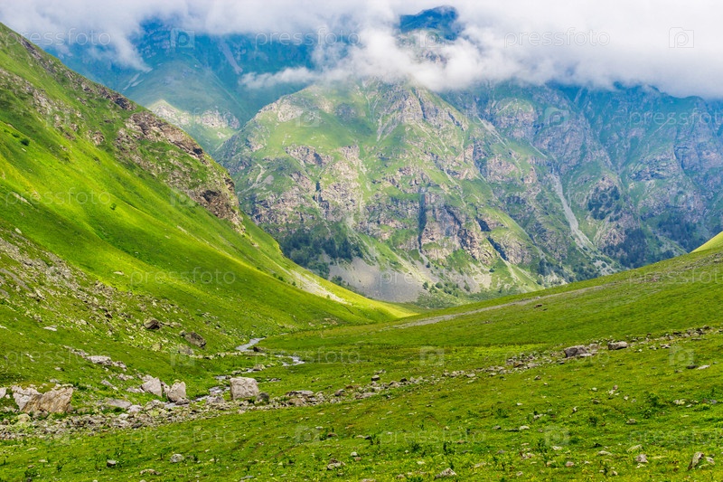 Ручей в горной долине в летний день