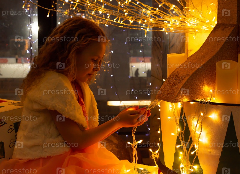 Красивая нарядная девочка возле елки в Новый год