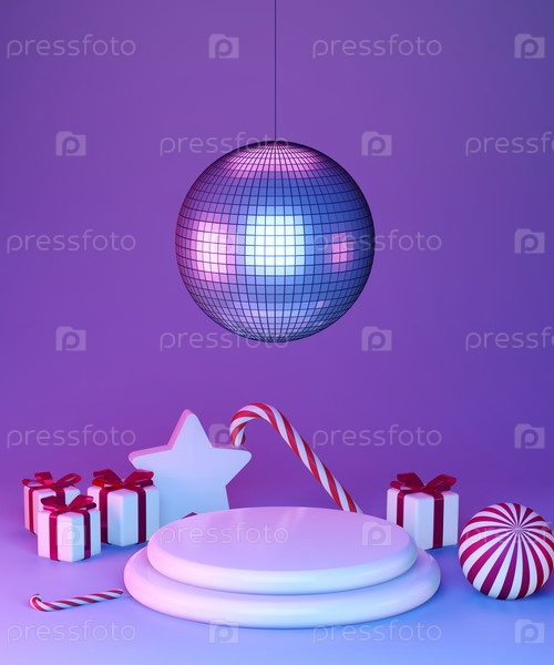 Новогоднее оформление вечеринки с диско-шаром, 3d рендеринг