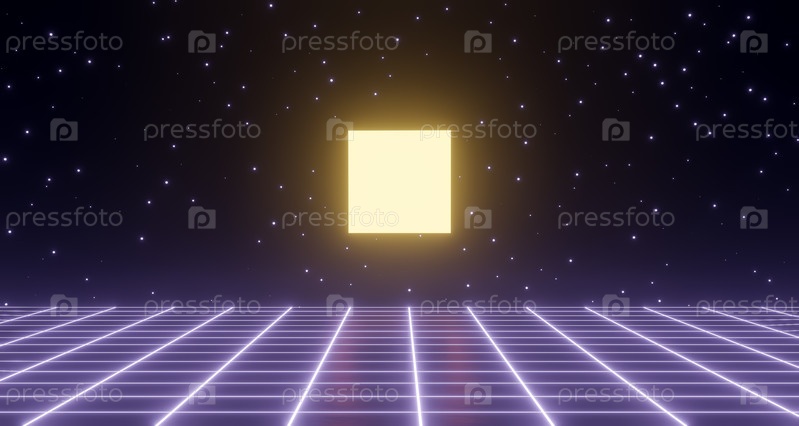 3D-рендеринг, неоновая светящаяся геометрическая форма, ретрокаркасный плакат