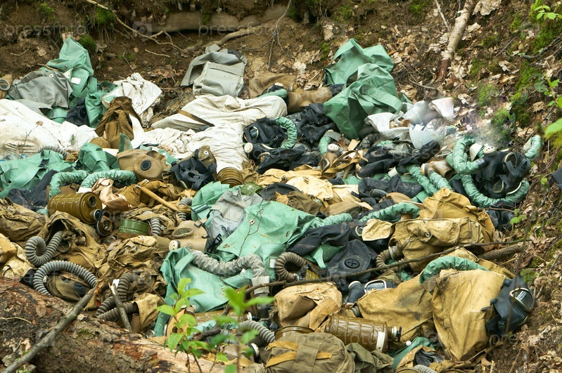 Загрязнение окружающей среды, отходы противогазов и военный мусор в лесу