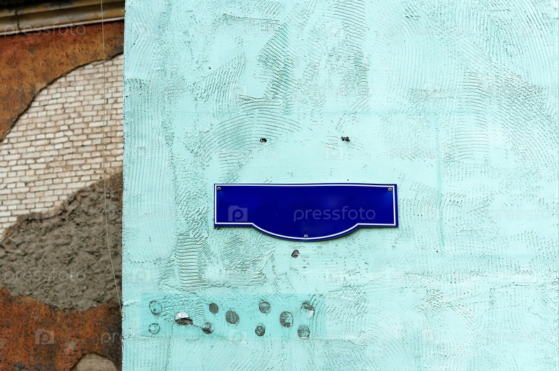 Табличка на доме на улице, табличка на каменной стене снаружи на улице