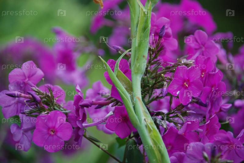 Темно-розовый флокс на зеленом фоне