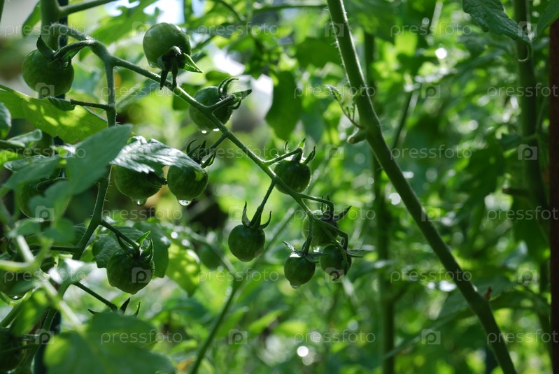 Маленькие помидоры растут на ветке