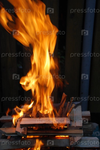 Огонь горит ярким пламенем