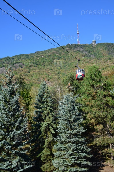 Красная кабинка канатной дороги на гору Машук в городе Пятигорске