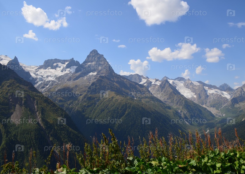 Вид на горы Кавказа в районе поселка Домбай