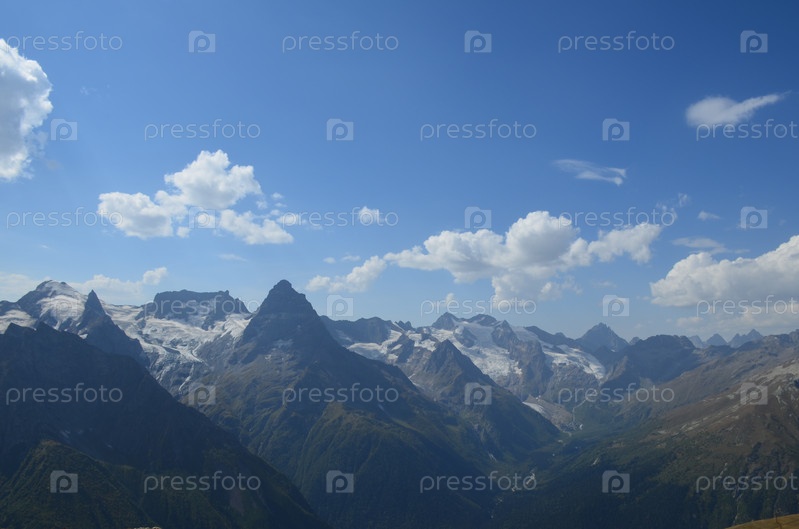 Вид на горы Кавказа в районе поселка Домбай