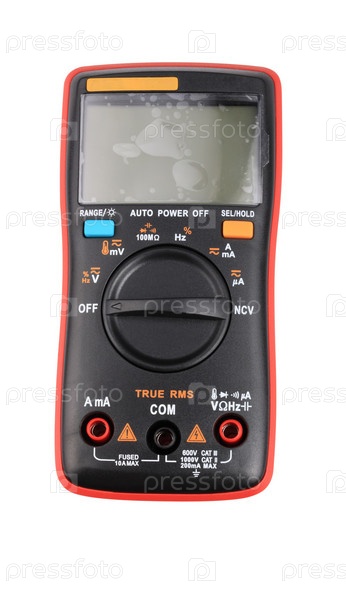 Черный цифровой мультиметр на белом фоне в сухой день