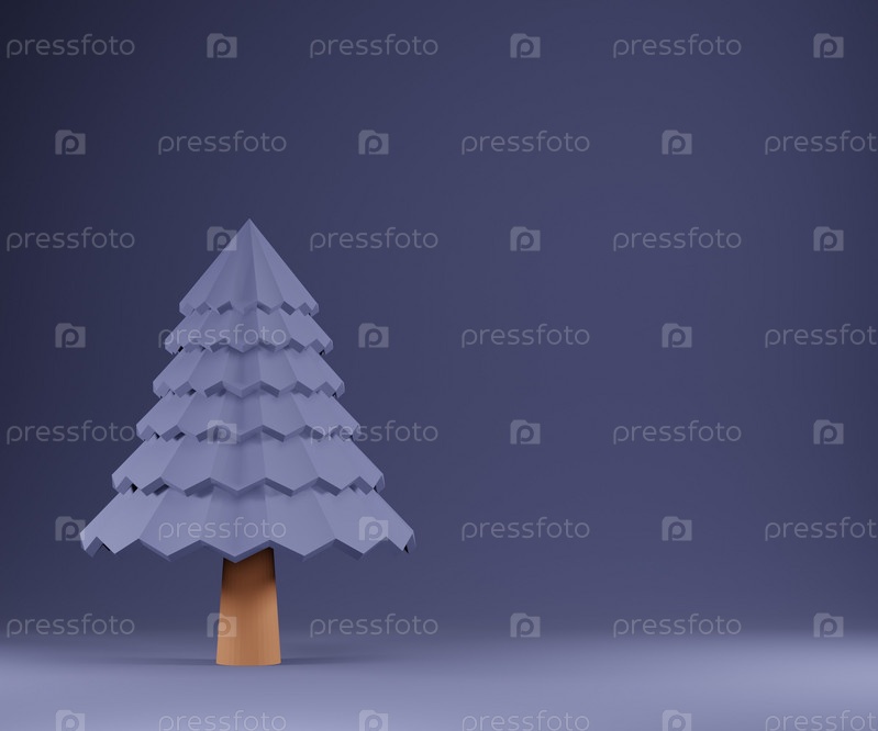 3D-рендеринг открытки с елкой в фиолетовых тонах