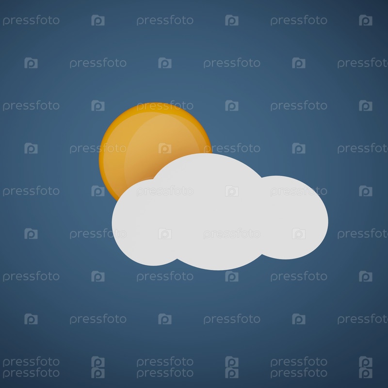Мультипликационное солнце и облако в небе, символ погоды, 3D-рендеринг