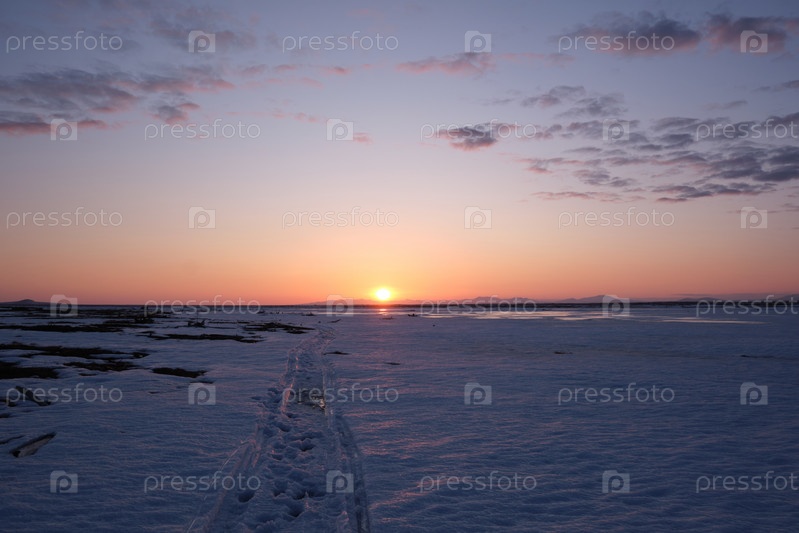 Следы на снегу. Закат