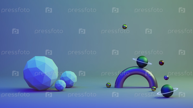 Абстрактная космическая иллюстрация с планетой, неоновый цвет, 3D-рендеринг