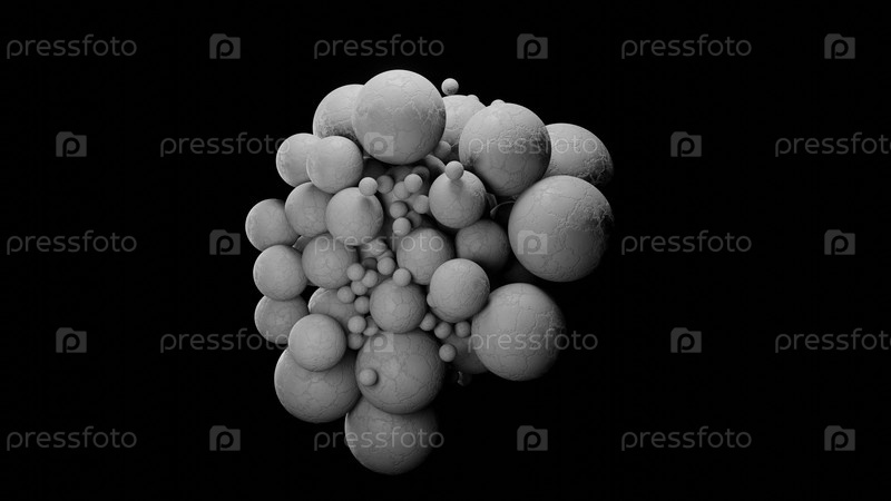 Левитирующие текстурированные сферы на темном фоне, 3D-рендеринг