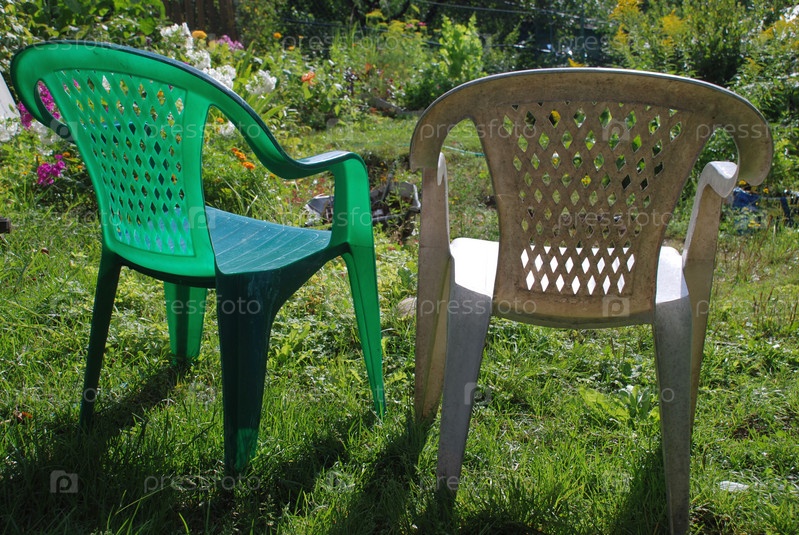 Два старых пластиковых садовых стула