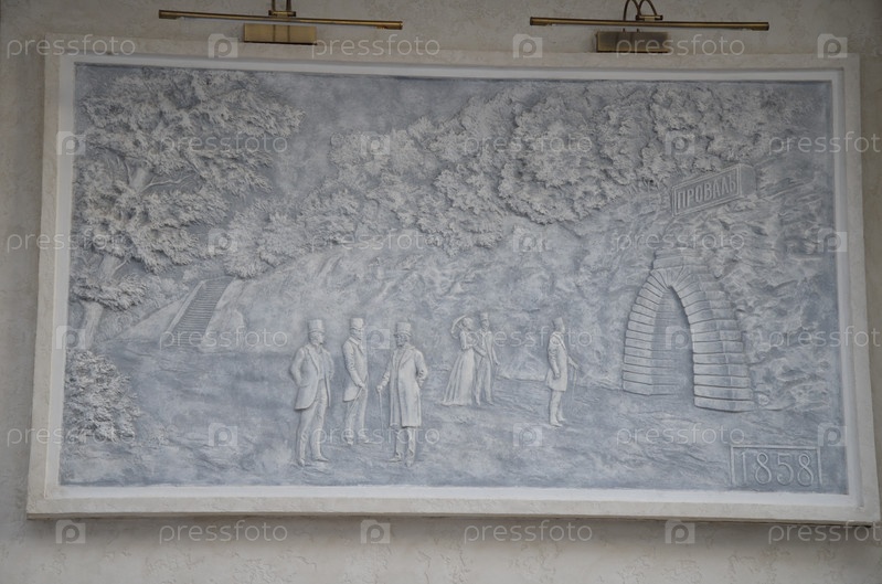 Барельеф (картина) 1858 года изображающая гуляющих у Провала в Пятигорске