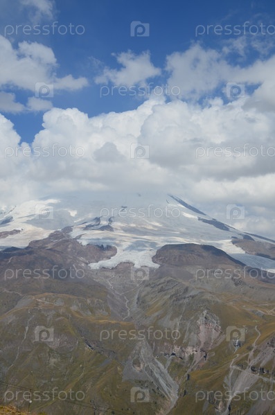 Вид на вершины горы Эльбрус, закрытых белым кучевым облаком