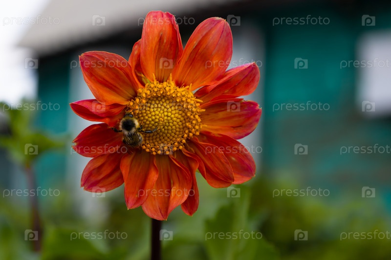 Шмель сидит на георгине