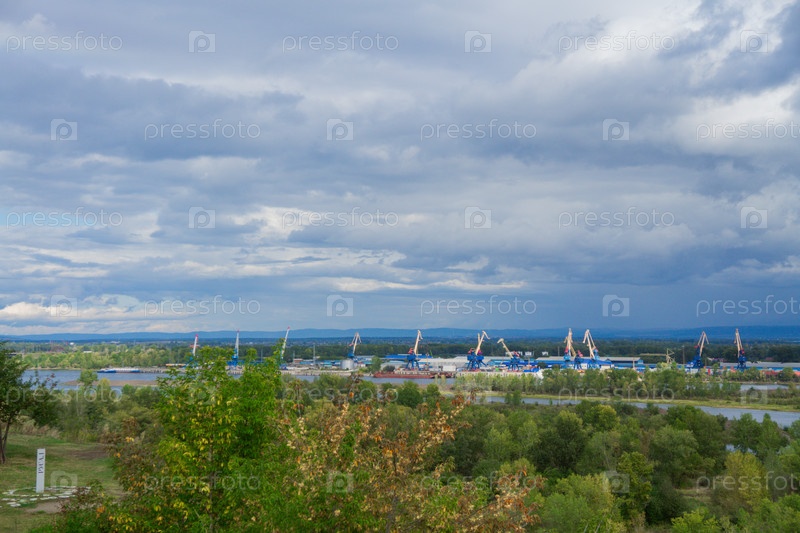 Вид на Енисей в центре Красноярска осенним днем