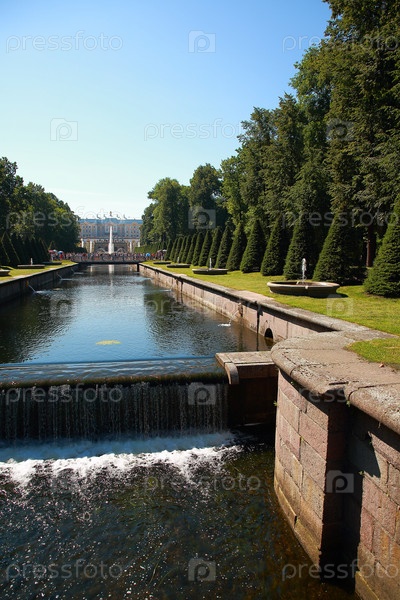Вид вдоль Морского канала в направлении дворцового комплекса. Петергоф
