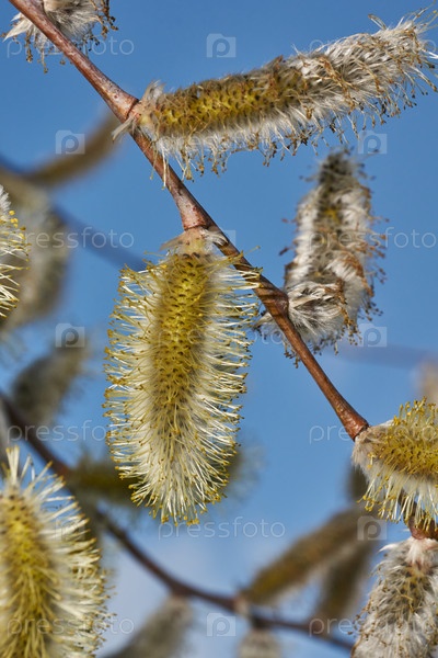 Весна.Ива (лат. Salix) цветет, серьги соцветия распустились