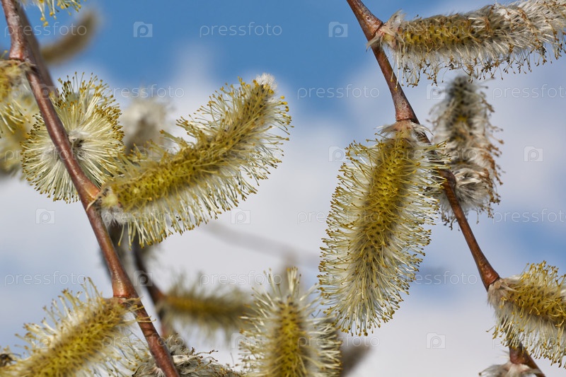 Весна.Ива (лат. Salix) цветет, серьги соцветия распустились