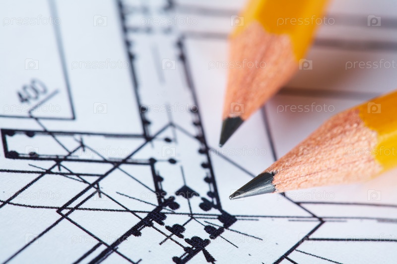 Карандаши на строительном проекте крупным планом