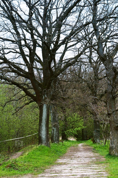 Деревья в ряд вдоль дороги, ровный ряд больших деревьев по обочинам дороги