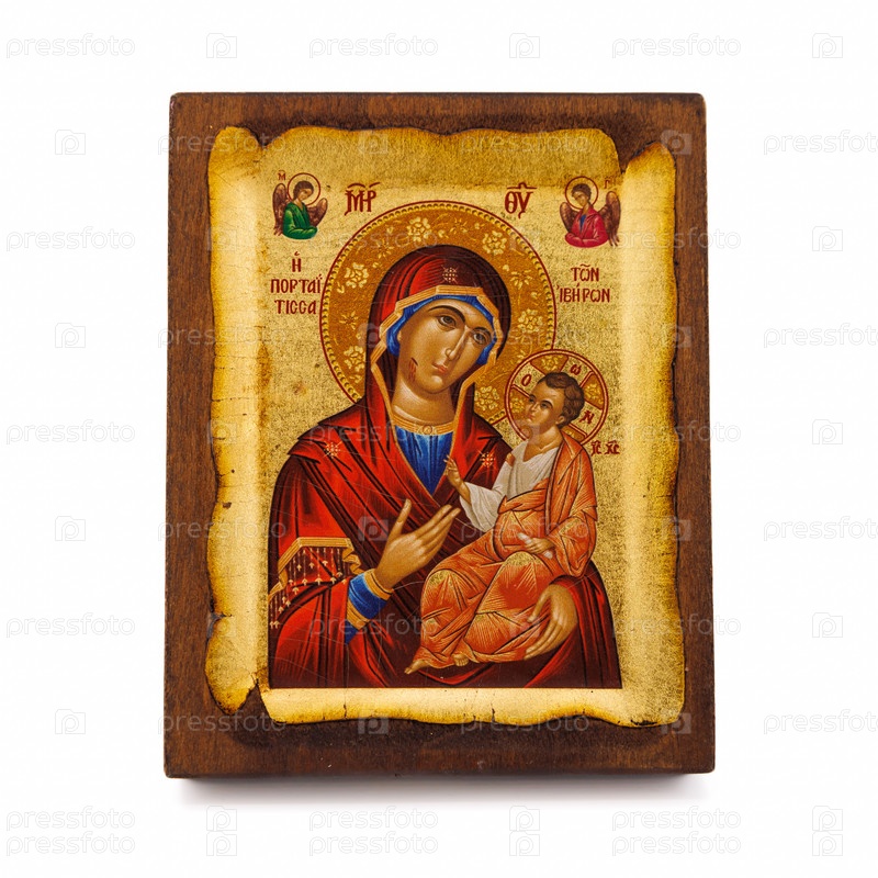 Икона Иверская Пресвятая Богородица (Портаитисса) на дереве, сусальное золото, "обожженный" край