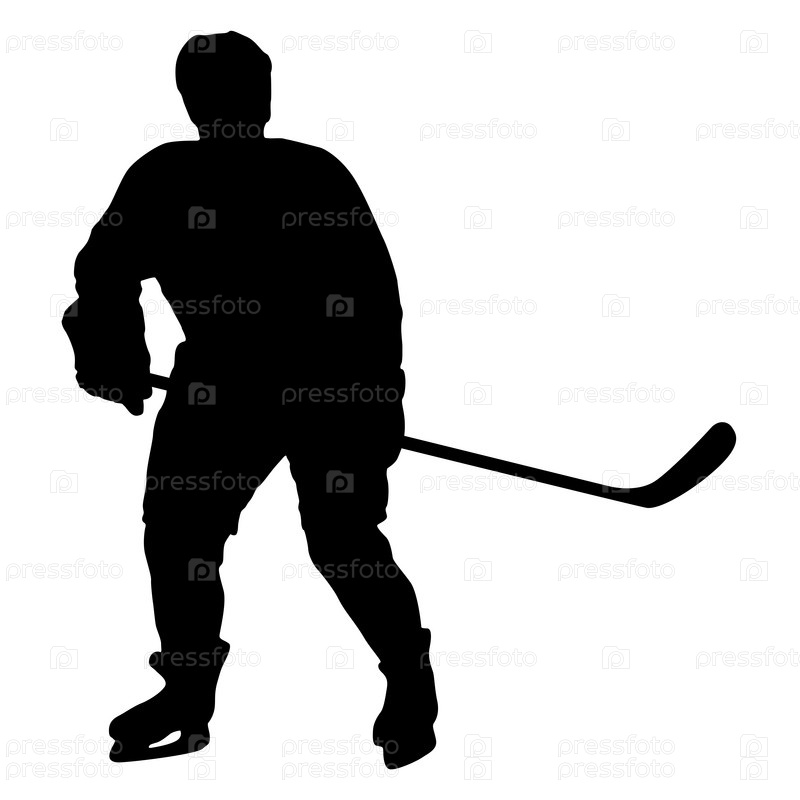 Силуэт хоккеиста на белом фоне