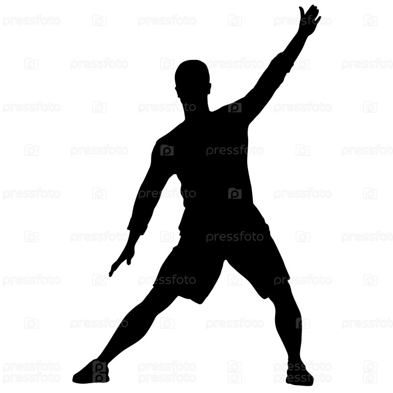 Черные силуэты человека с поднятой рукой на белом фоне