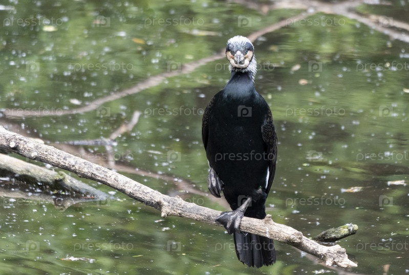 Большой моллюск Phalacrocorax carbo, стоящий на ветке