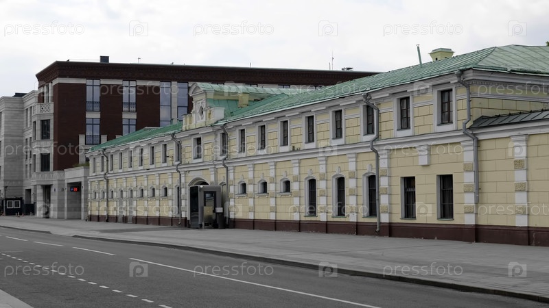 МОСКВА, РОССИЯ - 22 мая 2022 года: Хозяйственное здание, конюшня городской усадьбы П.И. Харитоненко