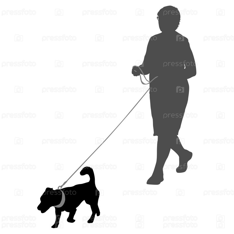 Силуэт женщины и собаки на белом фоне