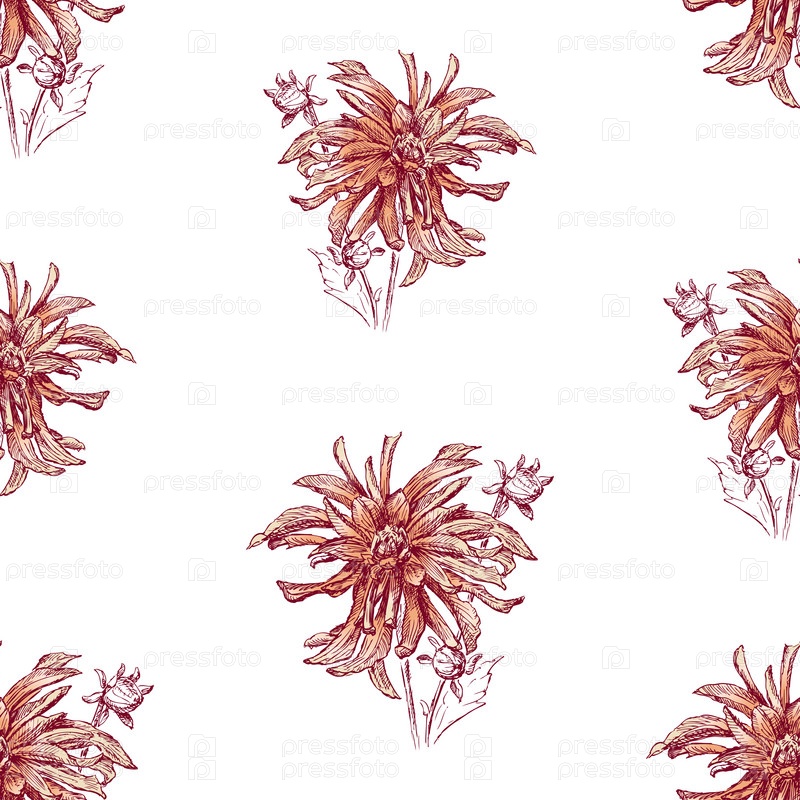 Бесшовный рисунок эскизов красных садовых астр с бутонами