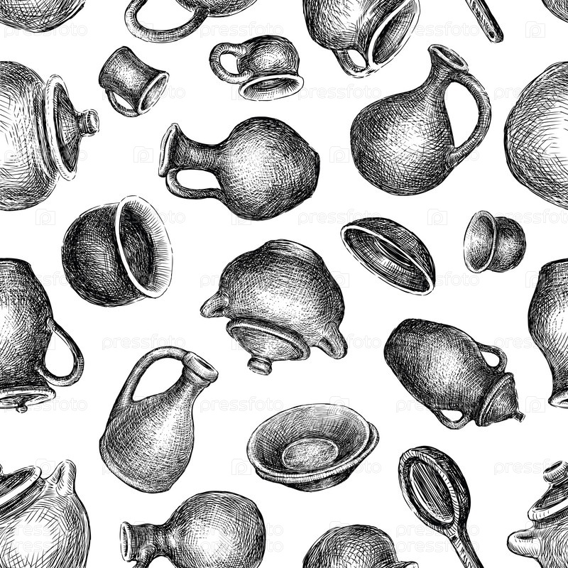 Бесшовный рисунок эскизов различной керамики