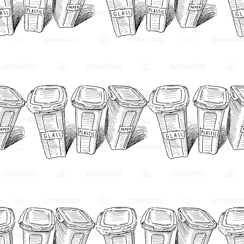 Бесшовный рисунок эскизов сортировки мусорных баков